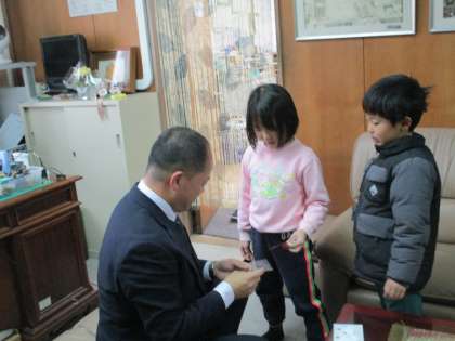 今日は、数名の1年生が校長室に招待され星のシールをもらいました。