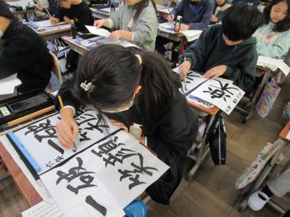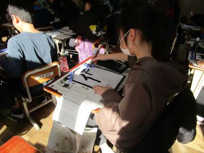 6年間の学習を生かして、大切にしたい言葉を書くことに挑戦しました。自分なりのめあてを立てるだけでなく、気をつけるところを話し合い、思いのこもった作品に仕上がりました。褒め合うところが素敵です!