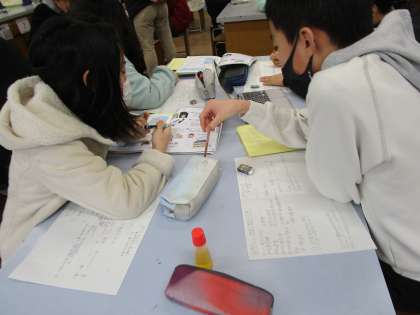 単元末テストを明日にひかえ、今日は復習の時間をとりました。これまでの実験を振り返りながら、みんなで話し合い、テストに備えて勉強を進めていました。
