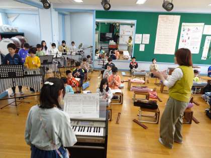音楽室で鉄琴・リコーダー・鍵盤ハーモニカを使って合奏をしました♪