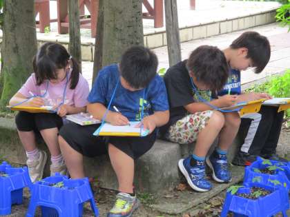 それぞれ、葉の色や形をよく観察したり、触ってみたりしながら