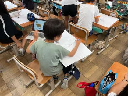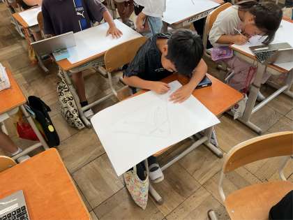 図工では、3年生になって心に残っている場面を絵に表しています。いろいろな出来事の中から心に残っている場面を思い出しながら、下書きをしました。どんな絵が完成するのか楽しみです!