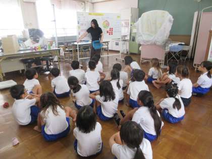 保健学習では、飲み物の中に含まれる砂糖の量について話を聞いて、ジュースの飲み方や栄養について学習しました。子どもたちは、コーラの中にシュガースティックが13本含まれていると聞いて、その多さに驚いていました。これをきっかけに栄養について考えることができればと思います。