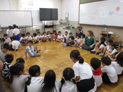 会議室がカーリー先生、ジョー先生と1・2年生でいっぱいになりました。