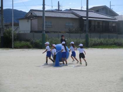 1.2年生合同種目の大玉運びの練習第一回目でした。