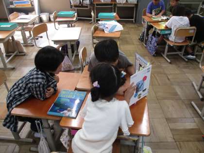 そこで、様々な生き物の本を読んで、百々小学校1年生の「いきもののかくれんぼ」を作ろう!ということで、まずは本を活用して材料集めをしています。