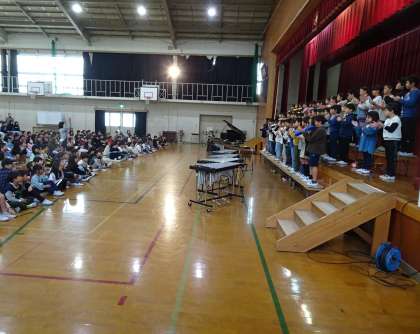 全校生徒の前での発表は、緊張感もありいい経験になったと思います。