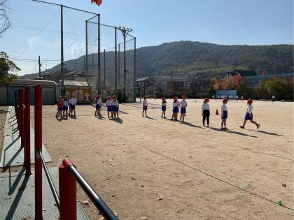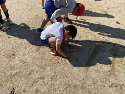 自分にあった助走距離を見つけるために、砂に名前をかいて記しをつけています。