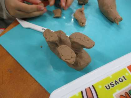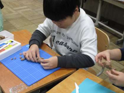 図画工作「いっしょにおさんぽ」の学習では、粘土を使った工作をしました。