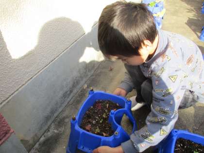 水やりをしたり、成長を観察したりと大切に育てています。