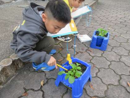 生活科で育てている小松菜の観察をしました。