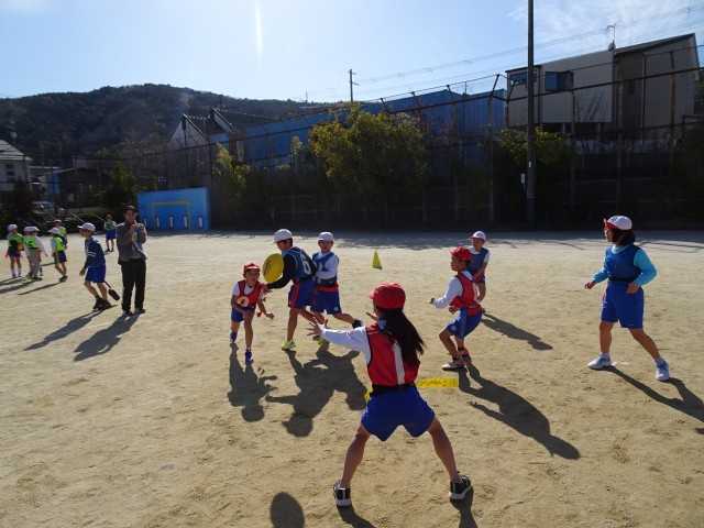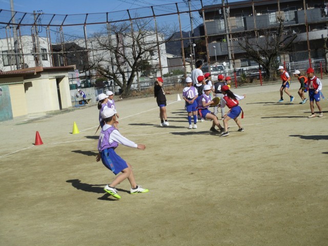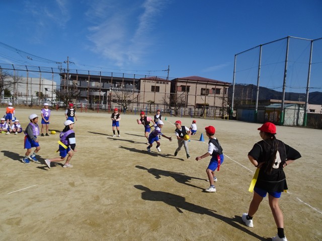 今日の5、6時間目に、学年でタグラグビーの学習をしました。