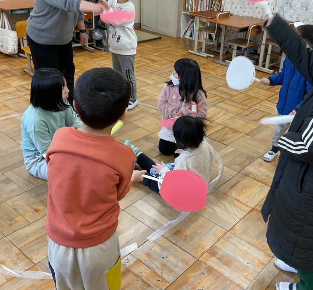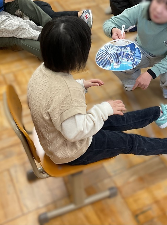 百々学区に住んでいる東総合支援学校のSさんとみんなでダンスやボウリング、風船まわしをしました。きららの子たちも今日を楽しみにしており、Sさんの素敵な笑顔が見られ、温かい雰囲気でした。Sさんがうちわの風を喜んでくれ、最後にはみんなでうちわで扇でいました。
