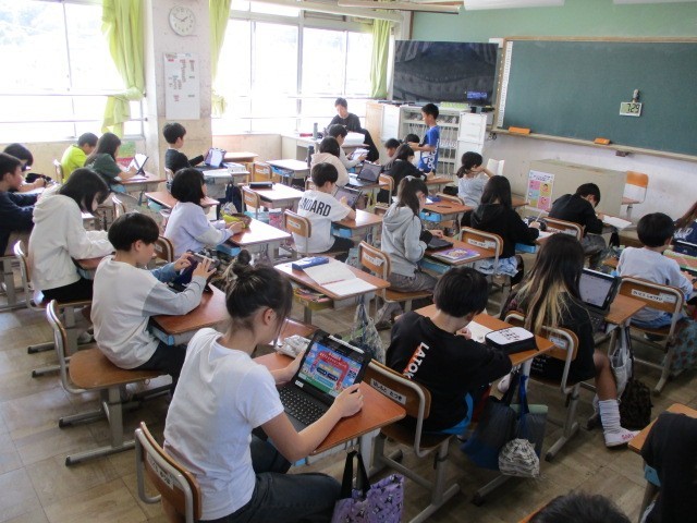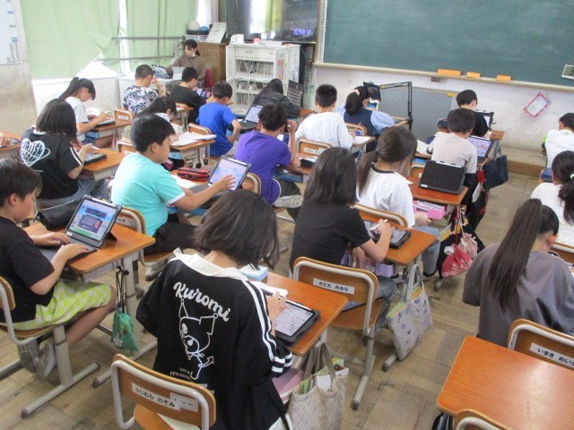 写真は、5年生での取組の様子です。始めたばかりなので、まだまだ進め方を学んでいるところですが、