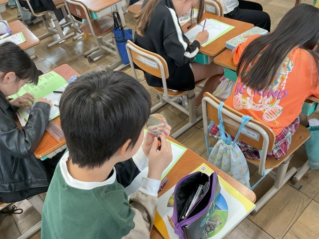 小さな種を虫眼鏡でよく見ながら、丁寧に観察カードに記録することができました。
