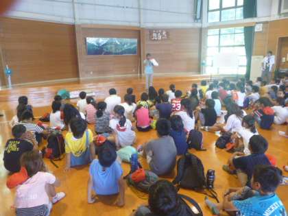 東屋で昼食をおいしくいただきました。ありがとうございました。食後にオリエンテーションをしました。みんな真剣にみさきの家で気をつけること等を聞いていました。この後、所内ラリーです。みさきの家を探検します。