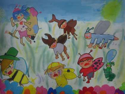 各クラスごとに選んだ本をもとにイメージを広げ,お話の絵ができてきました!細かいところまで丁寧に描けていますね!