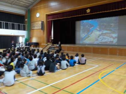 子どもたちの期待が高まるよう,写真を使って説明をしました。