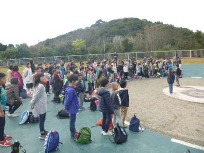 元気な声で大宅小学校の「校歌」を歌いました。歌声とともに「校旗」がみさきの家に掲げられました。みさきの家での「誓いの言葉」の後に,所員さんより,3つの約束「5分前行動を大切に」・「あいさつを大切に」・「来たときよりもきれいにを大切に」とみんなで確認をしました。いよいよみさきの家での生活がスタートします。