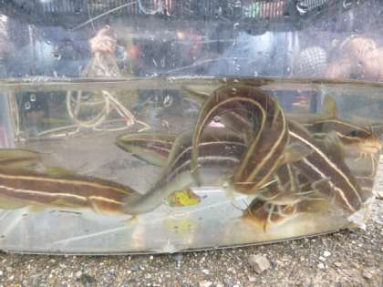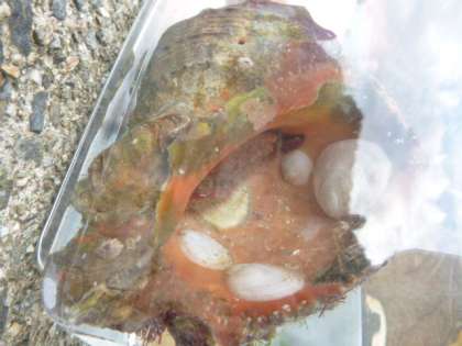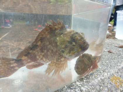 英虞湾に生きる生き物たち,水槽に入れて,じっくりと観察します。やどかりやかさごなどに子どもたちから大きな歓声があがっていました。