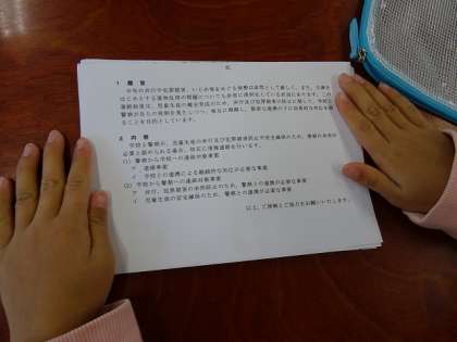 連絡袋の使い方を確認し,プリントを丁寧にしまいました。