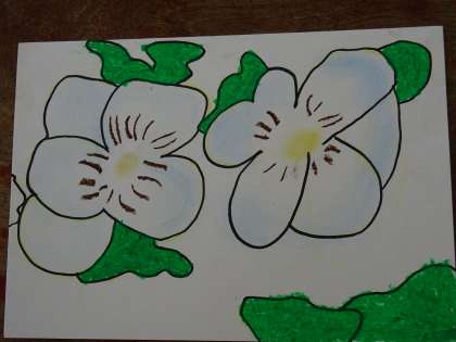 パンジーに色を塗りました。きれいな花ができあがりました。