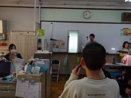 視力検査を行いました。中には,眼鏡の調整が必要な人もいるようでした。