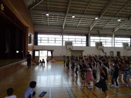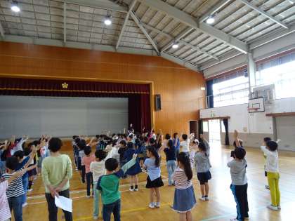 体育館で「1年生を迎える会に向けて」の練習をしました。