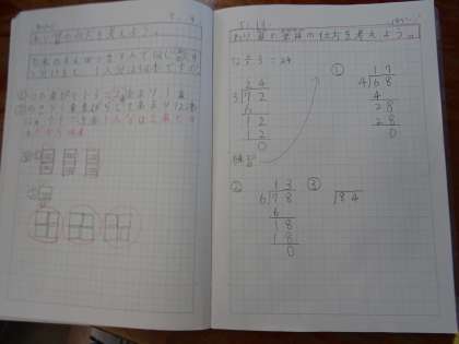 わり算の筆算の仕方を考え,練習問題に取り組みました。