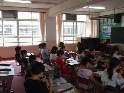 「Believe」を歌った後,1年生のためにリコーダー練習をしました。