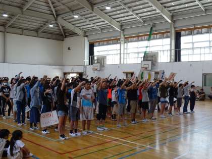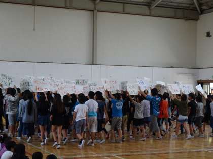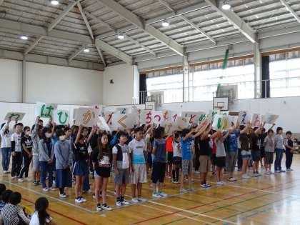 6年生の出し物です。「あいうえお」から始まる言葉から50音まで,メッセージが込められていて,とても素敵な贈り物でした。