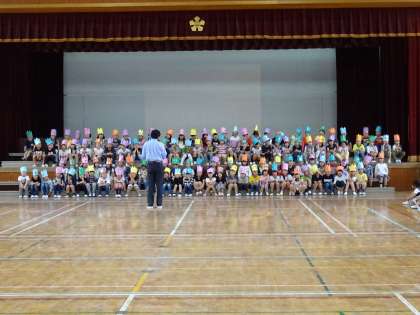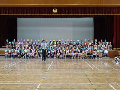 校長先生のお話です。各学年のよいところをお話ししてもらいました。
