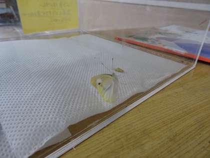 成虫の体のつくりについて調べました。早くも飛び立ったチョウもいるそうです。
