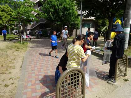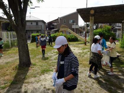 よく見ると植木の下などにお菓子のごみやたばこの吸い殻など様々なごみが落ちていました。いつも自分達が使っている公園ということで,子ども達は率先してごみを拾い,きれいにしようと頑張っていました。