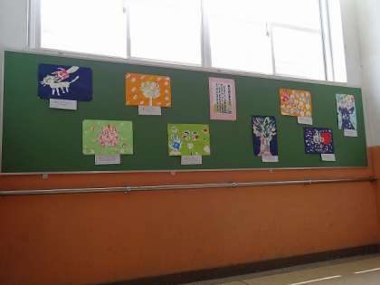 絵の具を使った作品が掲示されていました。