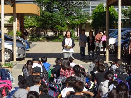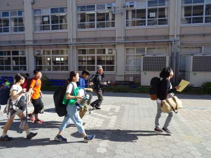 学級ごとに,元気に出発しました。バスで淡路島へ向けて出発です。