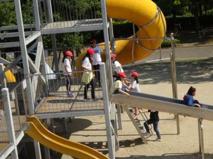 大きなアスレチックやブランコなどでたくさん汗を流しました。