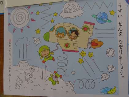 線をかく練習をしています。丁寧に,ゆっくりと取り組みました。