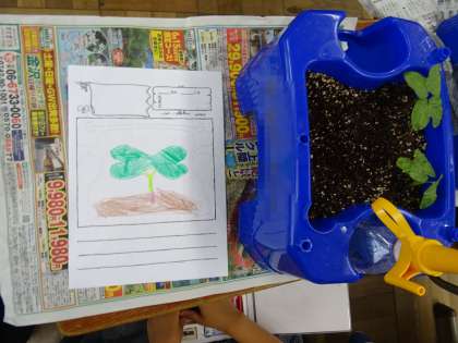 植物の変化や成長など,気付いたことや思ったことを絵や文などで表現しました。