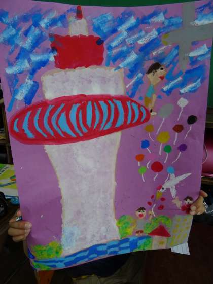 ♪3年生 京都タワーの絵を描こう〜いろいろな用具を使って〜 その1