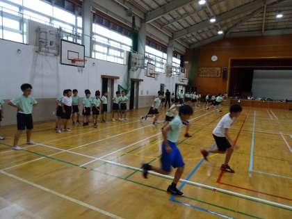 バスケットボール部の活動です。ステップを友達と確かめ合いました。