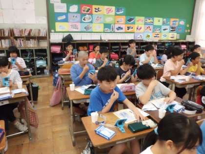 7日(金)は5年生が全国小学生歯みがき大会に参加しました。教室でDVDを見ながら健康な口内を保つための歯磨きやデンタルフロスの使い方を学んで実習しました。