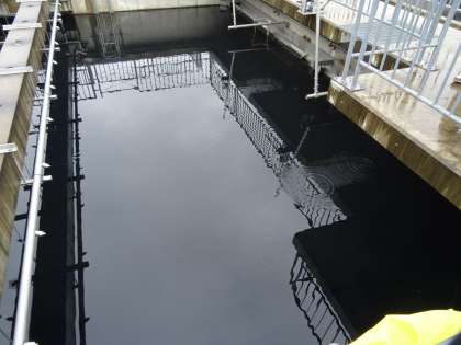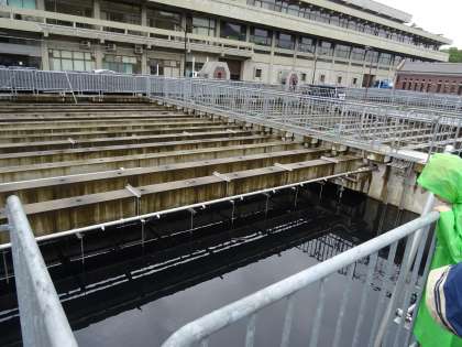 薬品沈殿池です。子どもたちは覗き込んでいました。