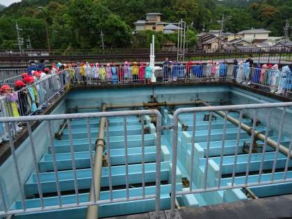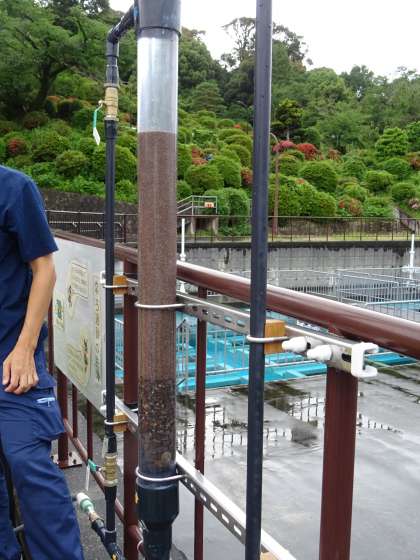 きれいになった水を砂と砂利に通して,さらにきれいにするそうです。