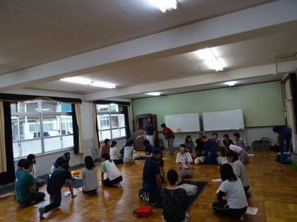 グループに分かれ,胸部圧迫を行いました。