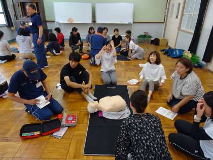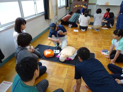 次はAEDの使い方です。毎年参加している教員も新たな発見があったようです。