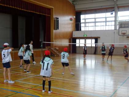 ソフトバレーボールの学習です。見通しをもち,対戦をしました。