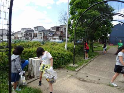 児童会の活動です。地域の公園で,清掃活動を行いました。