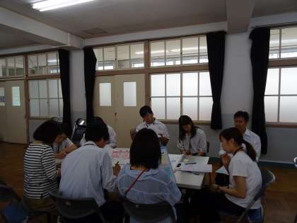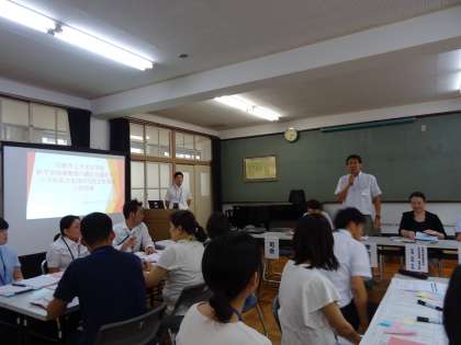 公開授業後,事後研修会を行いました。他校から参加された方とともに,教材研究を深めました。