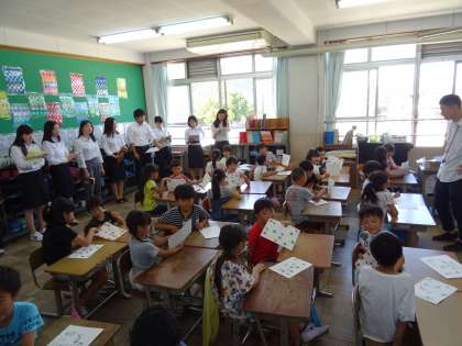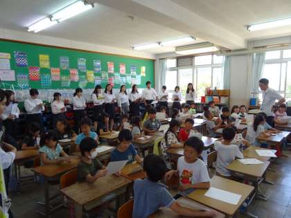 今回は,京都橘大学のみなさんが参観に来られました。次回,出前授業をしていただけるようです。
